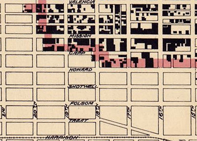 1906: After the Great Quake and Fire, which burned all the way to Shotwell and 15th st, City Hall decreed that grocery saloons were no longer allowed